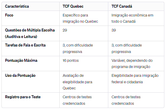 A imigração para o Canadá e especialmente para a província do Quebec exige uma comprovação de proficiência em francês, para a qual os testes TCF Quebec e TCF Canadá são fundamentais. Embora ambos os testes sejam essenciais para processos de imigração, eles atendem a diferentes requisitos e têm características distintas.